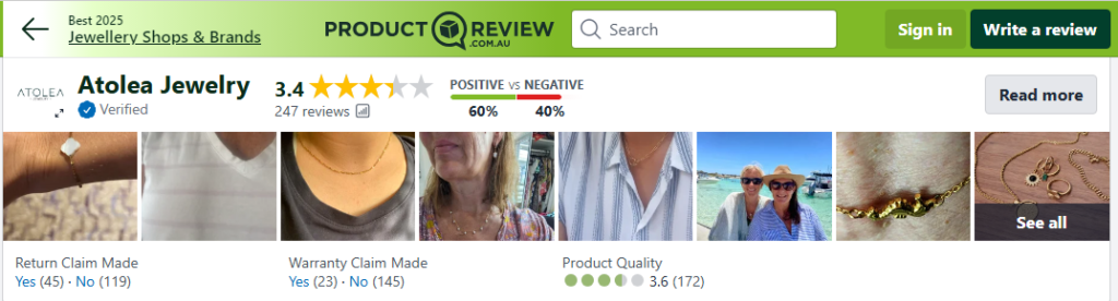 Atolea Jewelry has 247 reviews and an average rating of 3.4 on ProductReview.COM.AU